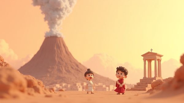 ¡Imagina una ciudad soleada y llena de vida donde la gente está comprando, riendo y preparándose para almorzar... y de repente, todo se detiene, congelado para siempre bajo una manta gigante de ceniza! ¡Esa es la increíble historia real de Pompeya!