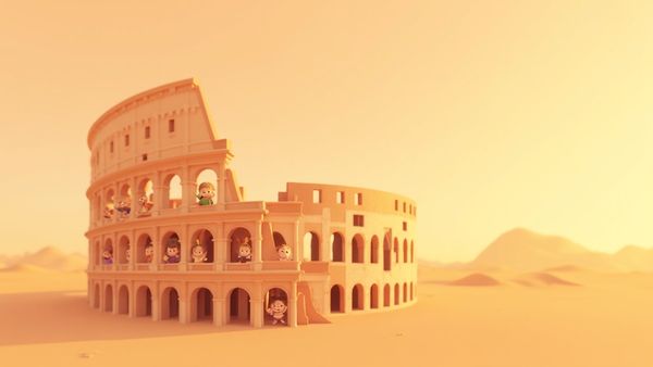 इस अद्भुत संरचना को, जिसे प्राचीन रोमनों ने फ्लेवियन एम्फीथिएटर कहा था, पूरी दुनिया की सबसे प्रसिद्ध इमारतों में से एक है। निर्माण लगभग 70 या 72 ईस्वी में सम्राट वेस्पासियन के तहत शुरू हुआ और उनके बेटे, टाइटस द्वारा 80 ईस्वी में पूरा किया गया! इसे पत्थर, कंक्रीट और टफ (एक प्रकार की ज्वालामुखी चट्टान) जैसी सुपर-मज़बूत सामग्रियों का उपयोग करके बनाया गया था। लगभग 500 वर्षों तक, यह विशाल अंडाकार इमारत बच्चों और बड़ों दोनों के लिए अविश्वसनीय—और कभी-कभी डरावने—सार्वजनिक प्रदर्शनों का मुख्य स्थान था।